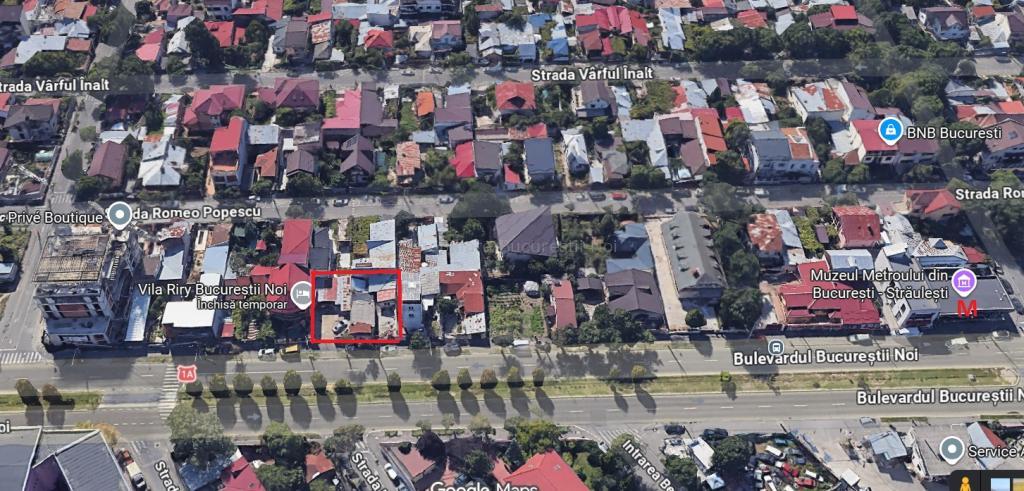Oferim spre vanzare un teren de 413 mp cu front stradal de 22.21 m situat pe bulevardul Bucurestii Noi, intre cele doua statii de metrou, Laminorului si Straulesti.