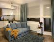 - living luminos cu bucătărie open-space complet mobilată și utilată